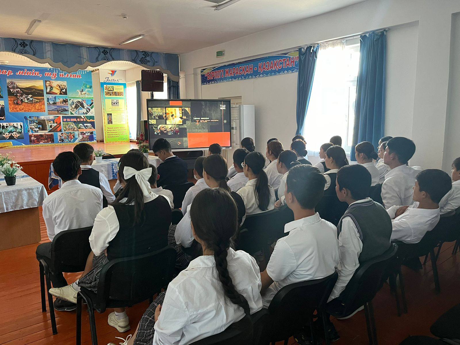 «А.Дәрібаев атындағы жалпы білім беретін мектеп» КММ «АДАЛ АЗАМАТ» Біртұтас тәрбие бағдарламасы аясында Түркістан облысы дін істері басқармасының 2025 жылғы 26 тамыздағы №38/528 хатқа және Облыстық Терроризмге қарсы комиссиясының тапсырмасына сәйкес, діни экстремизм мен терроризмнің алдын алу мақсатында арнайы әзірленген бейнематериалдар 8-10 сынып оқушыларына көрсетілді.