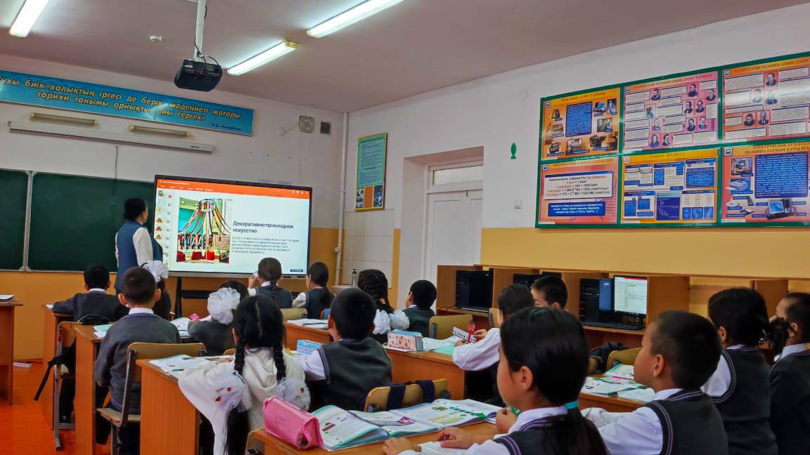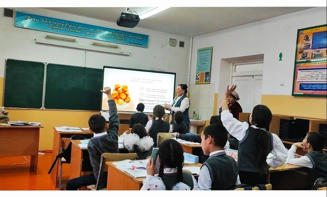 4 желтоқсан күні А. Дәрібаев атындағы жалпы білім беретін мектебінің бастауыш сынып мұғалімі Телібай Бибігүл Мырзатайқызы орыс тілі пәні бойынша 3 -сыныпта "Декоративно прикладное искусство" тақырыбында ашық сабақ өтті. "Испеку бауырсаков" әдісімен үй тапсырмасын тексеріп, жаңа сабақты түсіндіріп, оқушылармен сұрақ жауап әдісін пайдалана отырып, сипаттау мәтінінің ережесімен таныстырды. Оқушылар "Бәйге" әдісімен өзін - өзі бағалап отырды. Ұлттық сәндік қолданбалы өнер туындыларын екі тілде еркін аударып, оларды сипаттап өздерінің орыс тілін еркін меңгергендігін байқатты. Ұстаз өзінің шеберлігімен сабақты жоғары деңгейде өтті.