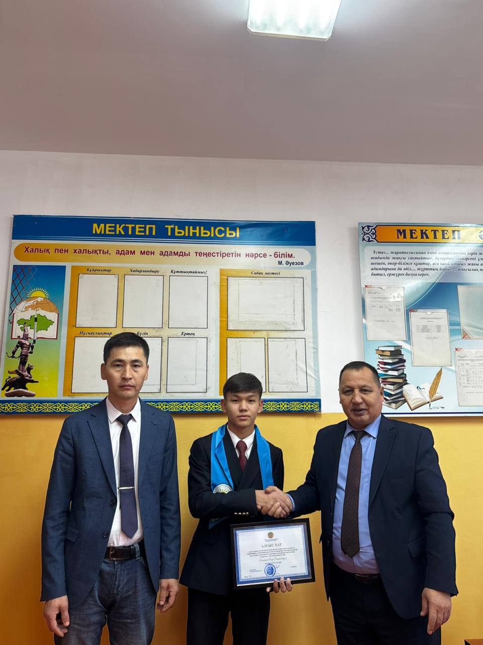А.Дәрібаев атындағы жалпы білім беретін мектебі 2025 жылы мектебіміздің мәртебесін ғылыми жоба байқауы, спорт сайысынан аудан, облыс, республика көлемінде асқақтатқан оқушылар 9 сынып оқушысы Кәдірбек Сымбат, 3 сынып оқушысы Асанбайқызы Нұрила, 8 сынып оқушысы Тұрарбек Мұрат, 10 сынып оқушысы, мектебіміздің өзін-өзі басқару ұйымының президенті Амантай Өнер Бақтыбайұлын мектеп директоры алғыс хатпен және арнайы сыйлықтармен құттықтады.