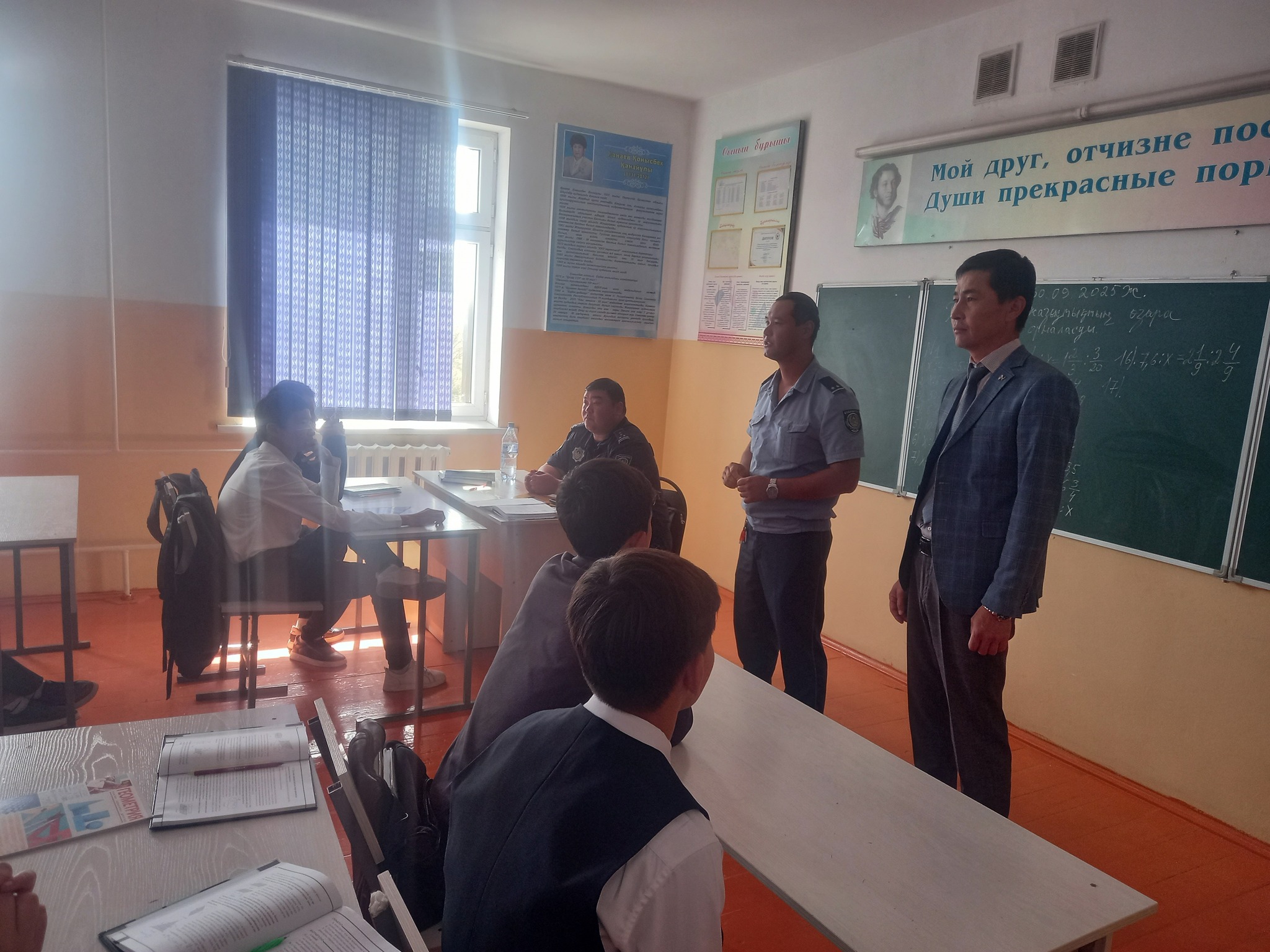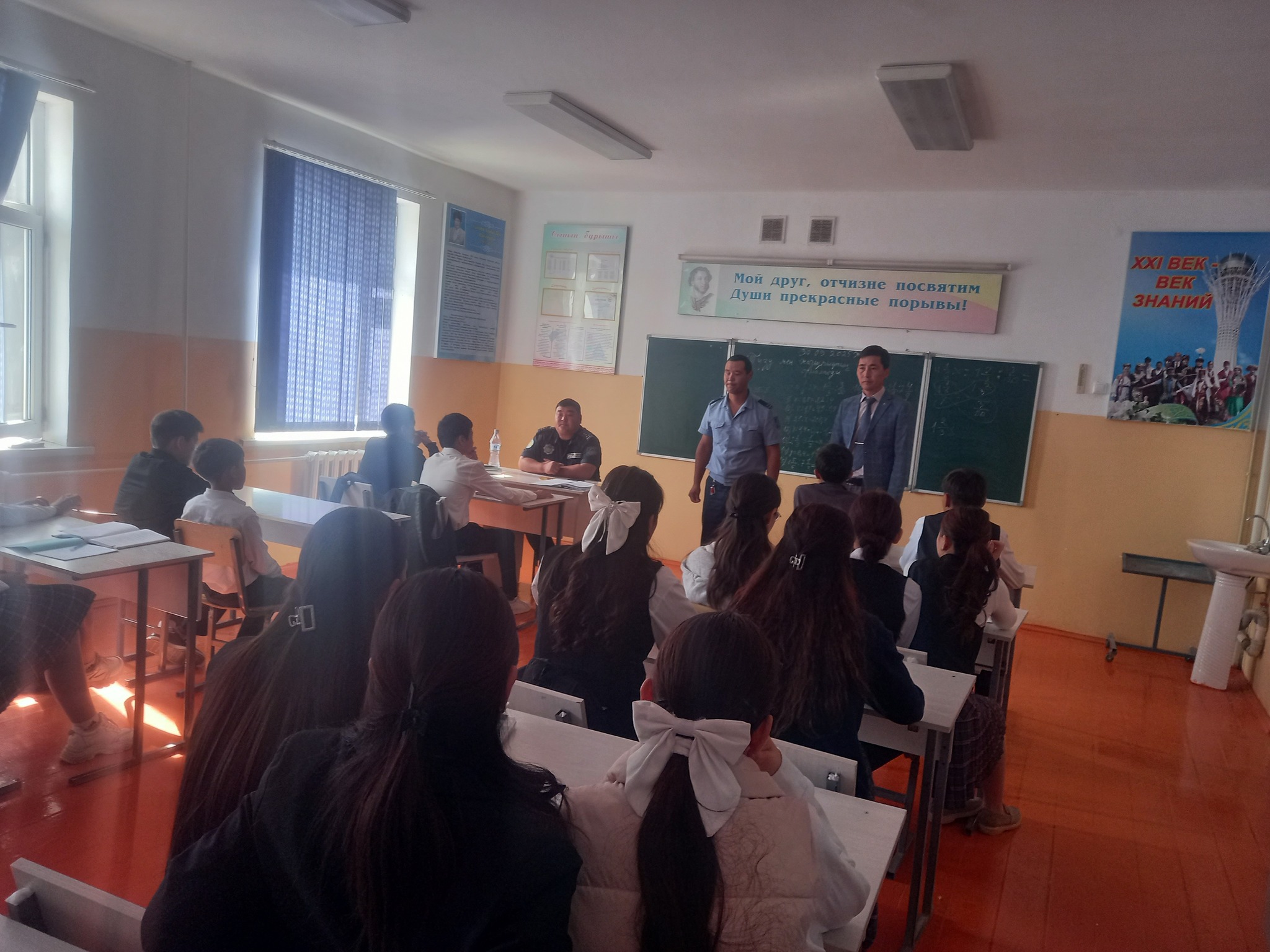 Кездесу барысында жасөспірімдердің құқықтары мен міндеттері, сондай-ақ құқық бұзушылық жасаған жағдайда туындайтын заңдық жауапкершілік жан-жақты түсіндірілді.