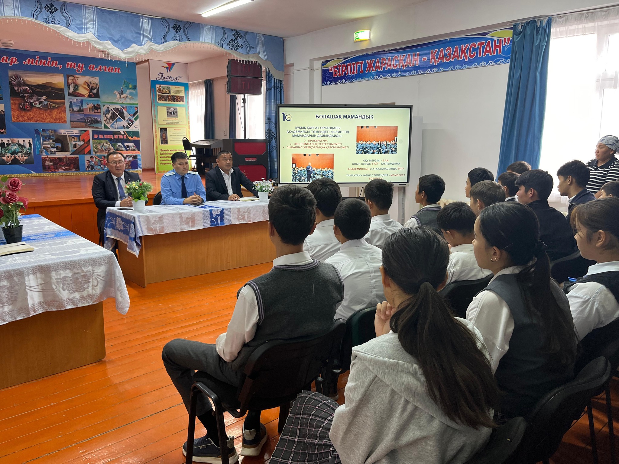 Отырар аудандық прокуратурасының тапсырмасына сәйкес 01.10.2025 жылы Отырар аудандық прокуратурасының прокуроры Бахадур Еркебұлан, Отырар АПБ ЖПҚБ ЮПТ инспекторы, полиция лейтенанты Сержан Мерей және Отырар аудандық білім бөлімінің тәрбие жұмыстары жөніндегі әдіскері Баирбеков Алимжан мектебіміздің 8 - 11 сынып оқушыларымен кездесу өткізіп кәмелетке толмағандар арасындағы құқықбұзушылық, құқықтық сауаттылықты арттыру, түнгі уақытта жүру, қылмыстық жауапкершілік, буллинг және кибербуллинг, бұзақылық, ұрлық жасау, есірткі және психотропты заттарды пайдаланудың зияндылығы, вандализм, көрінеу жалған шақыру, қаруды заңсыз сақтау және табиғат аясындағы түрлі тәртіп ережелері туралы түсіндірме жұмыстарын жүргізді.