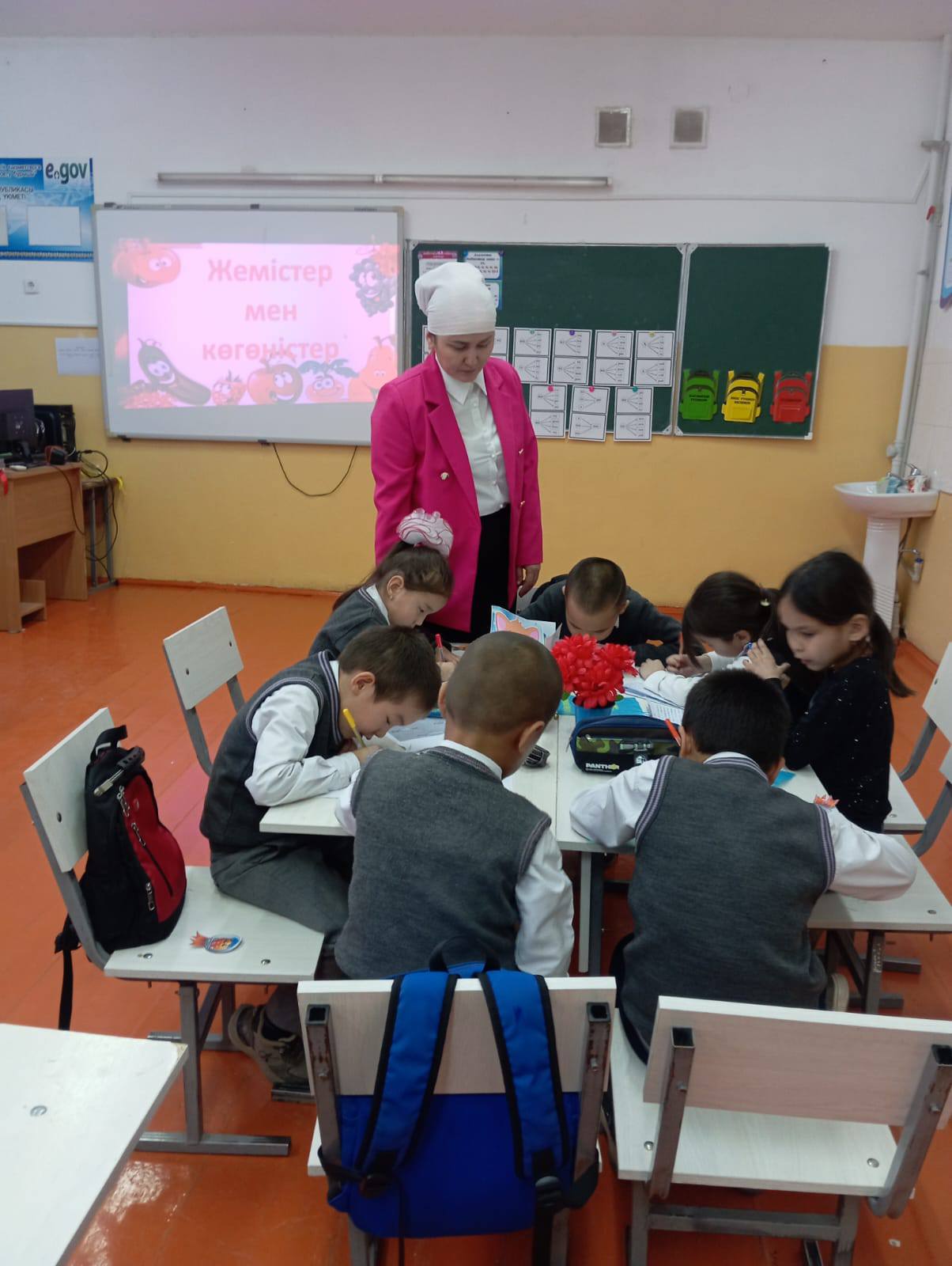 Балалар әріптерден сөз құрап, сол сөздерден мағыналы сөйлемдер жасады. Буынға бөліп оқыды, дыбыстық талдау жасады. ![]()