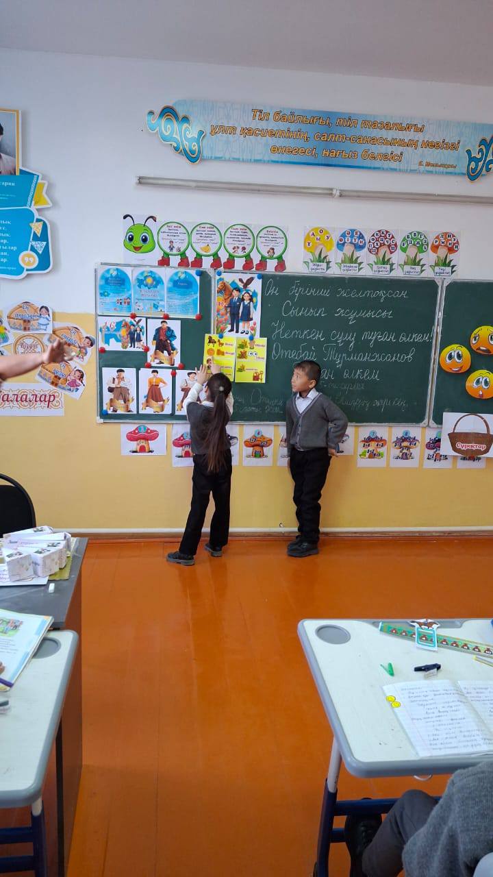 Сабақ барысында буынға бөліп оқу, сөзден сөйлем құрау дағдылары бекітілді.