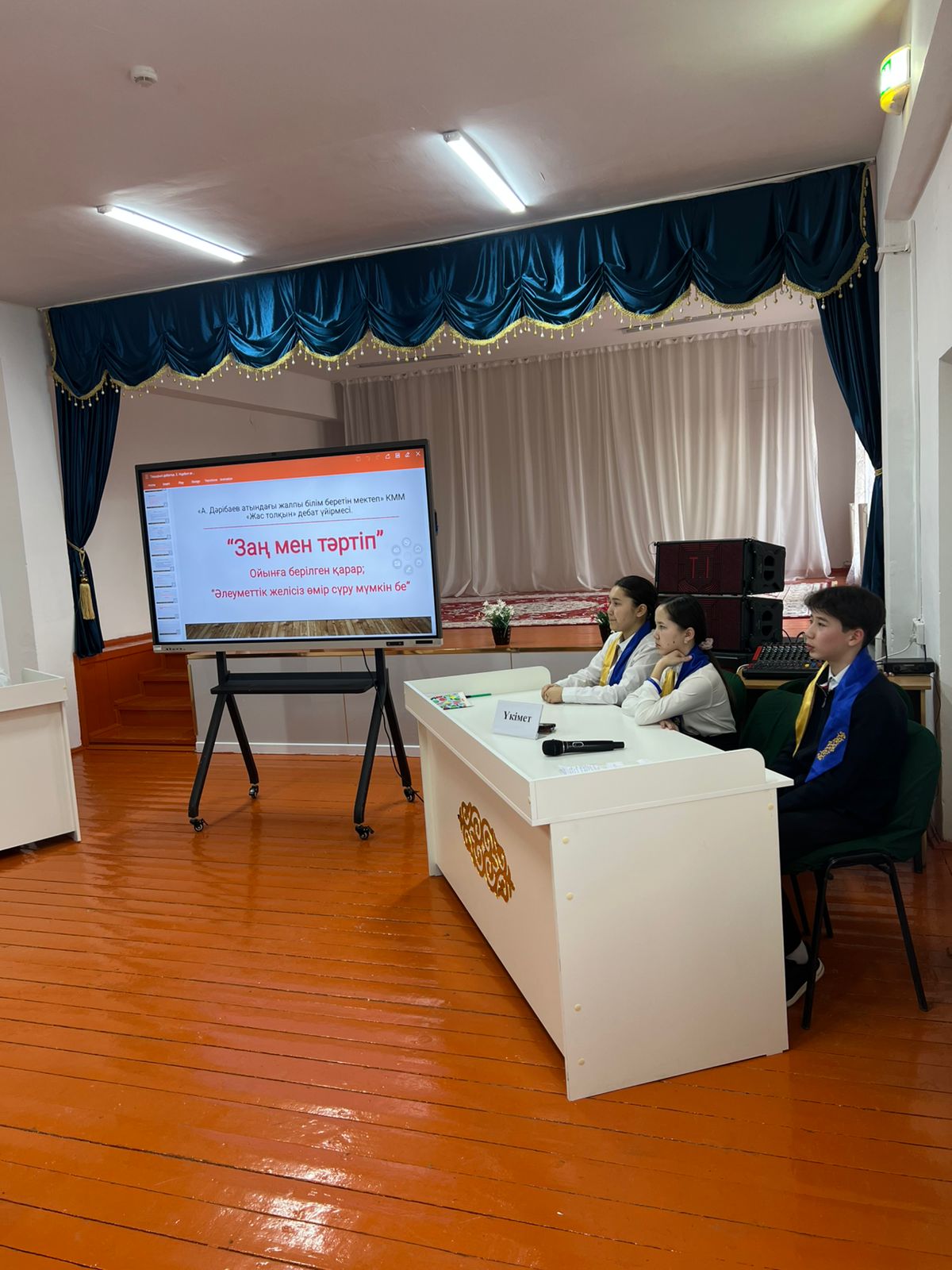 А.Дәрібаев атындағы жалпы білім беретін мектебінде "Жас толқын" дебат үйірмесінің ұйымдастыруымен мектеп оқушылары арасында пікірсайыс турнирі өтті. Шараның басты мақсаты - дебат мәдениетін дамыту, жас дарындарды анықтау, қатысушылар арасындағы достық және кәсіби байланысты нығайту. Сайыс барысында қатысушылар өз көзқарастарын дәлелдеп, заң мен тәртіптің қоғамдағы маңызын талқылады. Пікірталас қызу да тартысты өтіп, үздік атанған қатысушылар марапаттарға ие болды.