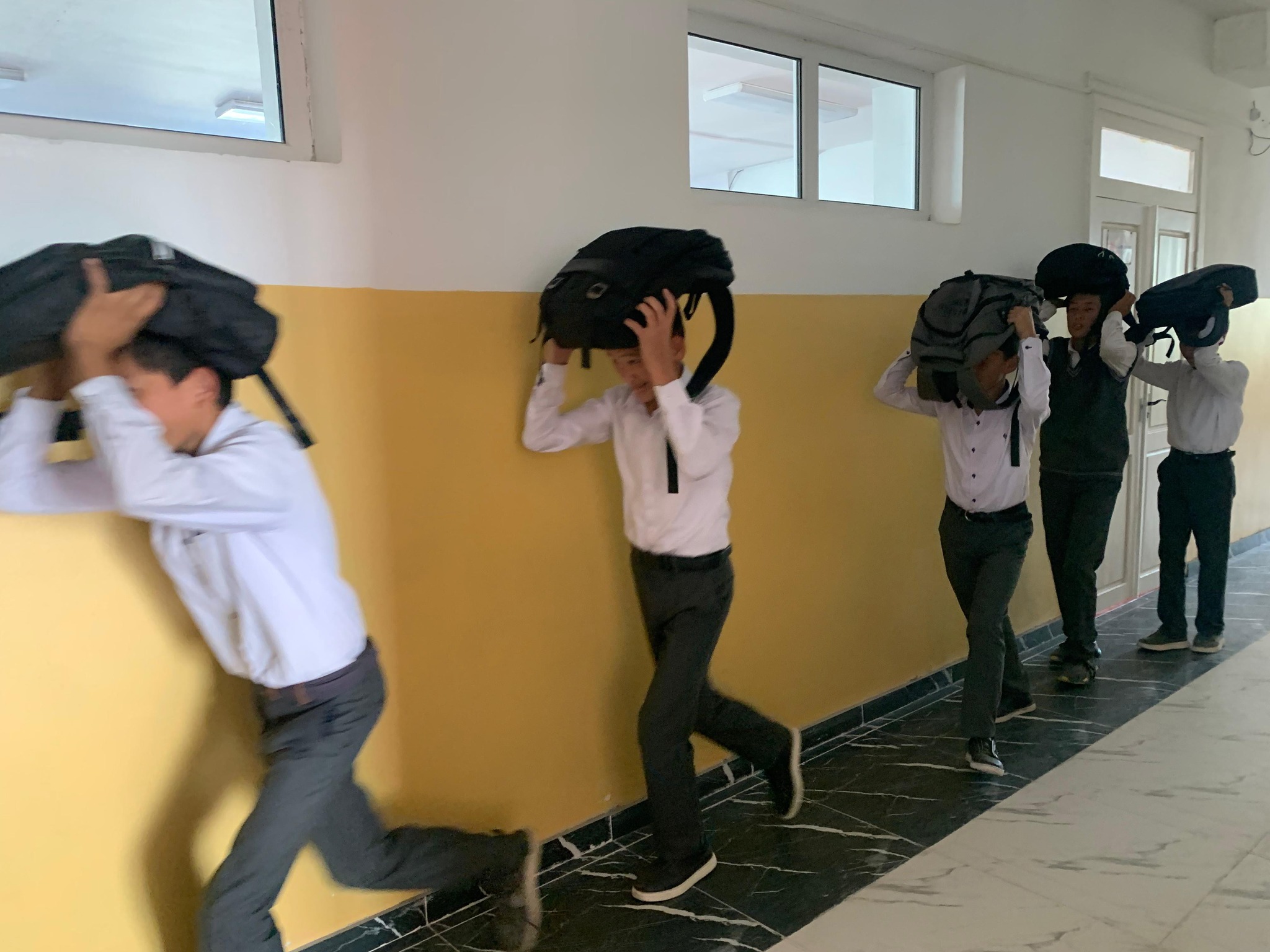 Жаттығу сағат 9:00-де дабыл қағумен басталды. Дабыл жүйесі іске қосылған сәтте мектеп ұжымы мен оқушылар түгелдей ғимарат сыртына эвакуацияланды.